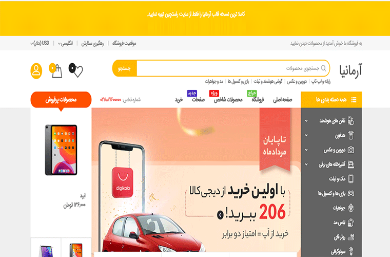 طراحی سایت فرتاک قالب آریا